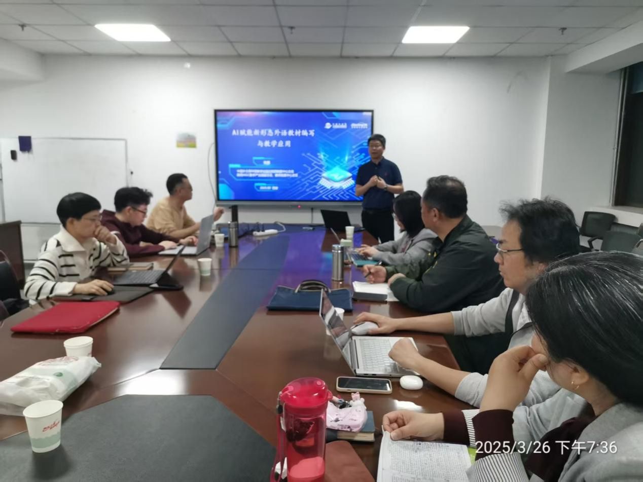 3月26日,外国语言文学系党支部与研究生公共外语教学部党支部联合举办“AI赋能新形态外语教材编写与教学应用”主题党日活动。活动特邀中国外文局华语教学出版社陕西教学服务中心张鹏主任作专题讲座。