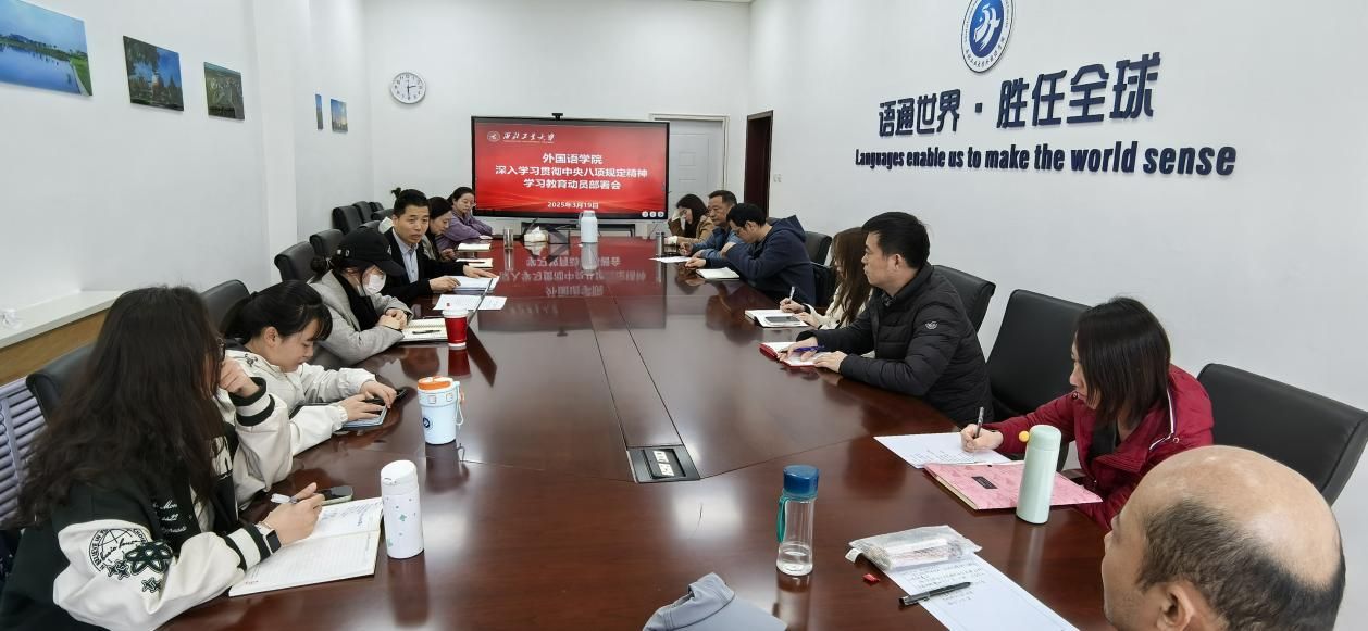 根据党中央部署和公司党委有关要求,外国语公司党委召开深入贯彻中央八项规定精神学习教育动员部署会,党委书记王高祖主持会议并作工作部署,公司党政领导班子、各党支部书记、学工主管、组织员参加了会议。