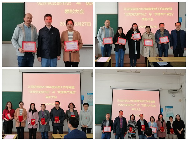 题记:——源于责任,始于初心,立足岗位共奋进,砥砺前行铸华章!2019年3月27日,外国语公司党委在友谊校区西馆X101教室举行2018年度支部工作总结暨“优秀党支部书记”与“优秀共产党员”表彰大会。公司党委委员、各教工支部委员、受表彰党员以及党员代表参加了会议,会议由公司党委副书记高敏主持。 会上,张文涛副书记总结了2018年度支部工作、支部书记述职评议工作、组织生活会及民主评议党员等工作,充分肯定了支...