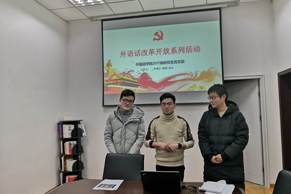 为庆祝改革开放40周年大会隆重召开,12月18日晚,2017级研究生党支部在院楼219室展开“外语话改革开放”系列特色活动。支部全体党员、发展对象、入党积极分子参加了此次支部活动,并在开始之前重温了庆祝改革开放40周年大会的精神。余凡、张桐和罗翔宇以改革开放40周年为切入点,从民生变化、国内外主流媒体报道等方面为支部成员讲述了改革开放的故事。余凡从改革开放40年以来,人民生活各方面的变化做了简单阐述,自...