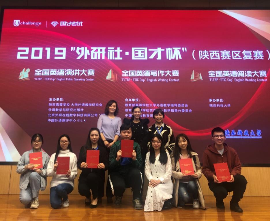10月18-19日,2019年度“外研社•国才杯”全国英语演讲、写作、阅读大赛陕西赛区复赛在陕西科技大学(西安校区)举行。公司老员工英语创新实践基地指导教师苏小青和孙荧带队,陈柄旭、郭宇恒、白昕卓、陈依凡、陈新乐、张诗和秦靖萱共7名选手参赛,在竞争激烈的三项赛事中表现优异,斩获佳绩,获得特等奖1个,一等奖3个,二等奖2个和三等奖1个。这些选手此前参加由基地举办的英语演讲、写作和阅读大赛校内选拔赛初赛和复赛,...