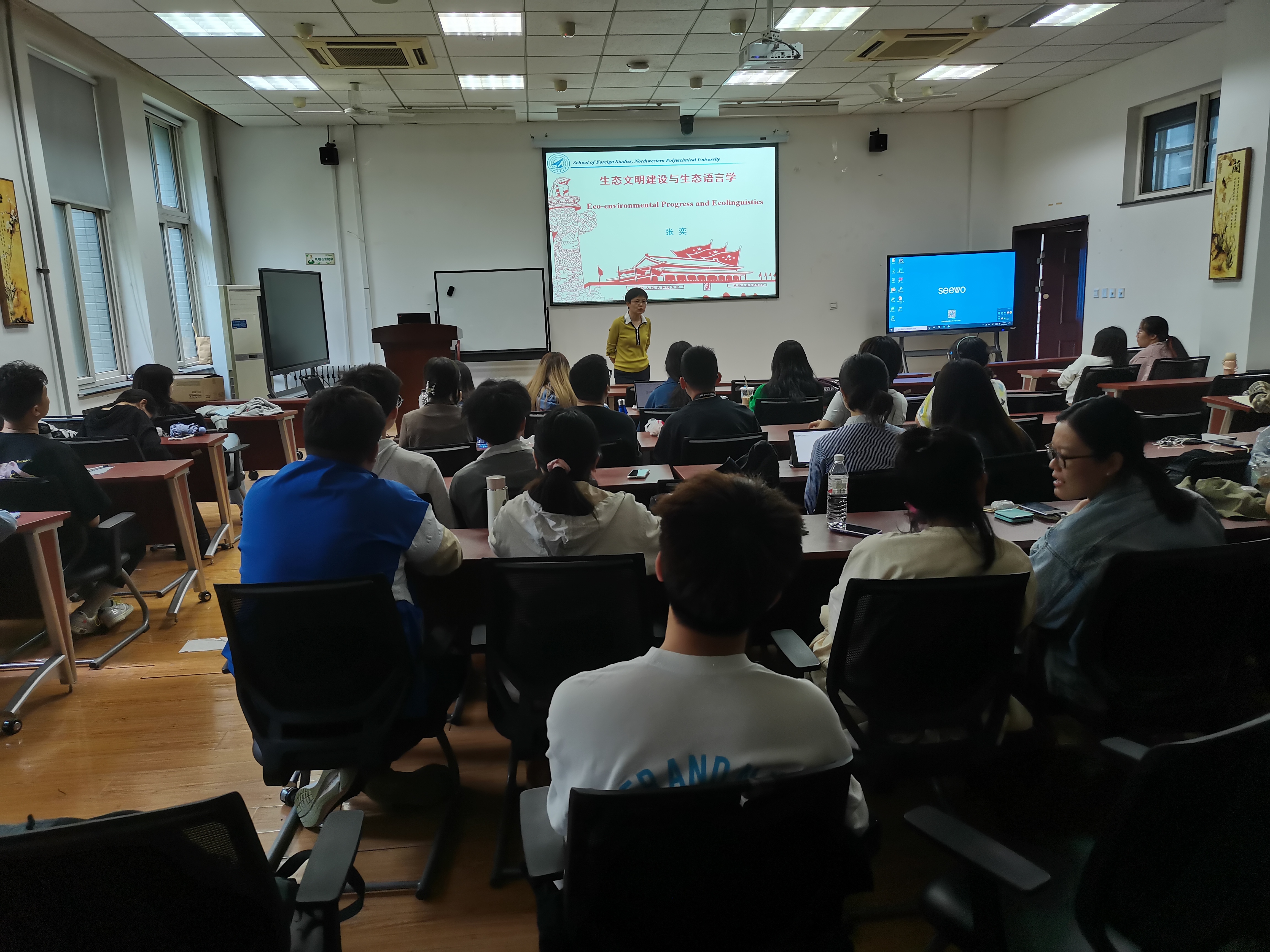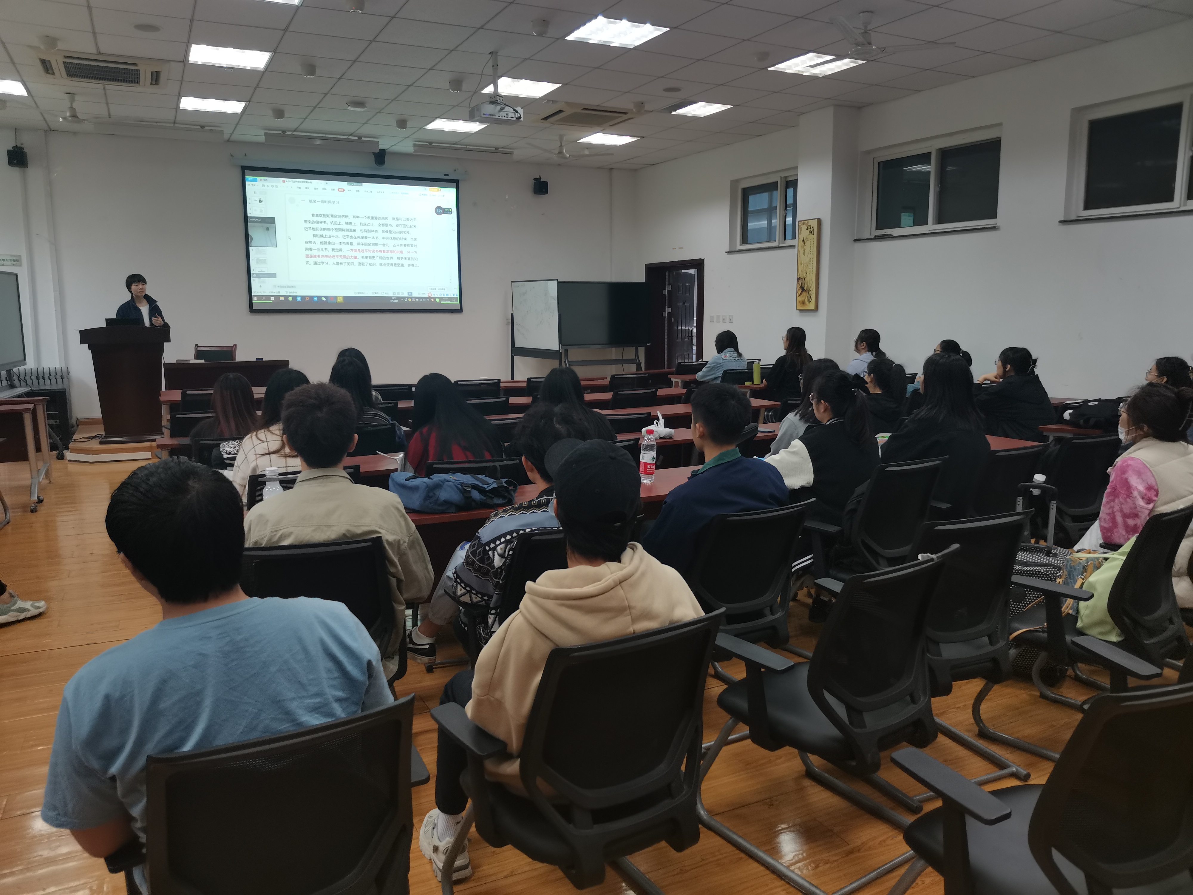 2022年5月11日中午,2022年第1期党员发展对象培训班第三课在公司楼204教室举行。公司48名党员发展对象通过公司副经理、党委委员张奕教授题为“生态文明建设与生态语言学”的党课讲述,学习了党的生态文明建设工作中的词句翻译和其中的英语语言现象。通过将党的理论学习与自身专业知识紧密结合,同学们对党的生态文明建设理论有了更深刻的理解。在培训班的开始,张奕向同学们展示了一些在国际新闻和政府网页国际版面中...