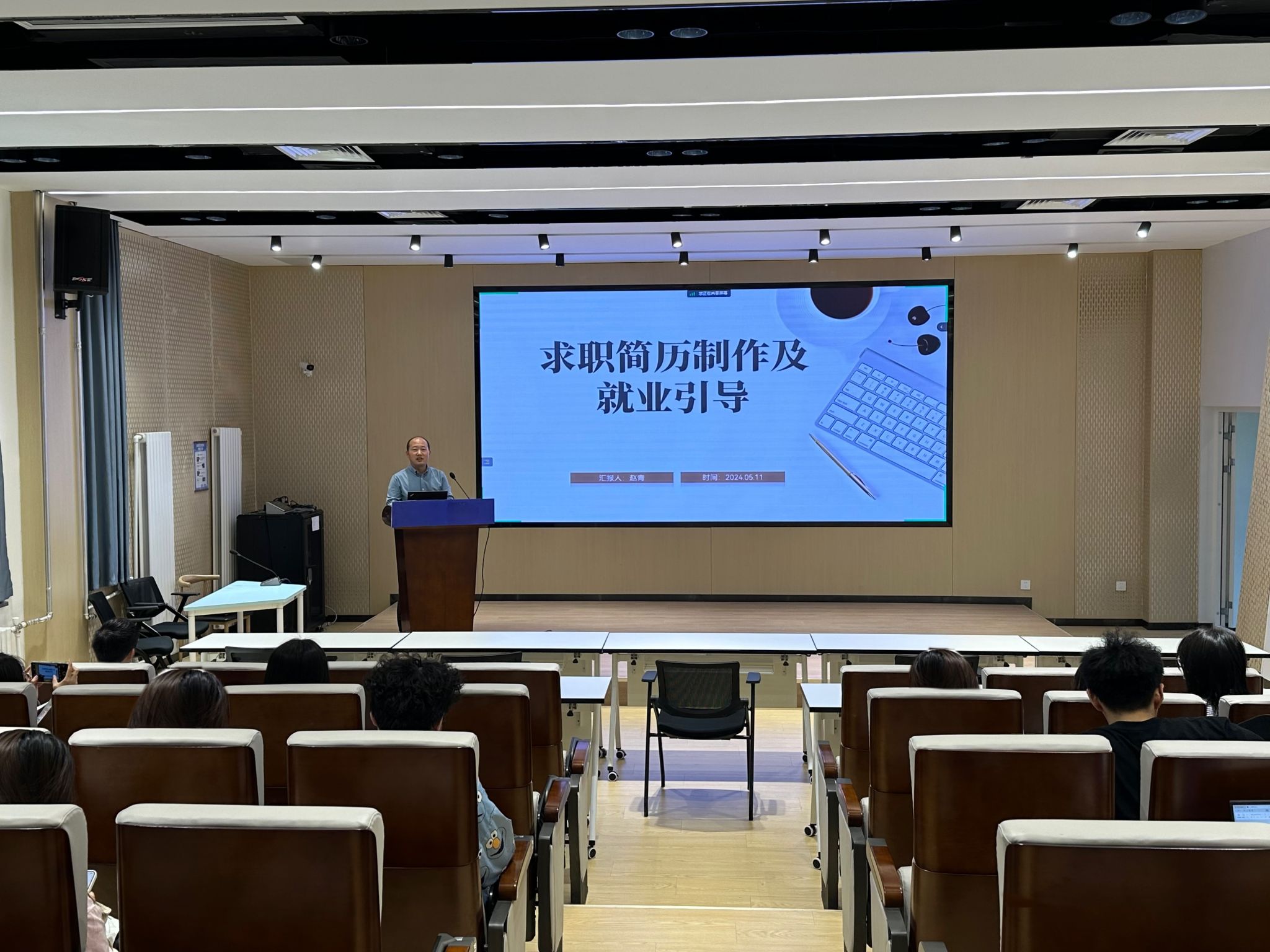 为了进一步提升公司毕业生的简历制作能力,树立良好的求职就业心态,提升就业竞争力,5月11日下午,辅导员赵青在公司二楼报告厅通过线上线下相结合的方式为2025届本硕毕业生作了“求职简历制作及就业引导”分享会。首先,赵老师介绍了简历的构成要素,并结合实例说明如何简明扼要地在简历上介绍自己的个人信息。接着他从明确要投递的岗位、分析岗位应具备的素质、构建简历的基本框架、梳理个人的所有经历、选择合适内...