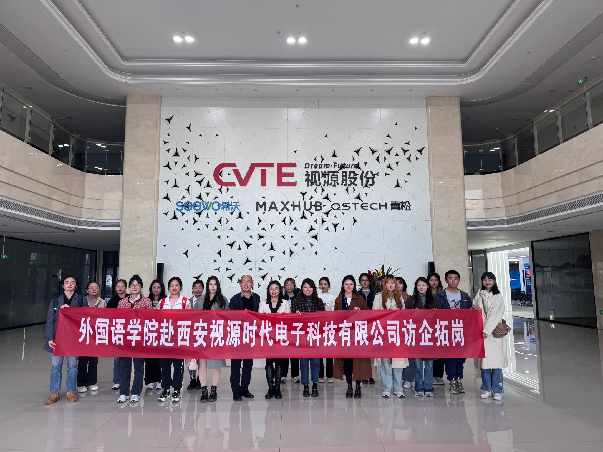 为了进一步深化校企合作,拓展外语学子实习就业渠道,11月5日下午,外国语公司党委副书记张桑桑和辅导员赵青组织公司18名本硕员工前往西安视源时代电子科技有限公司(CVTE)进行访企拓岗。首先,在CVTE售前经理闫浪涛的带领下,师生一行参观了公司产品展示大厅,了解了青松光电和教育品牌希沃的发展历程与科研成果。他介绍了多款LED产品及其多样化场景应用,例如智慧会议场景、指挥中心场景、沉浸式创意场景以及商业显示场景等...