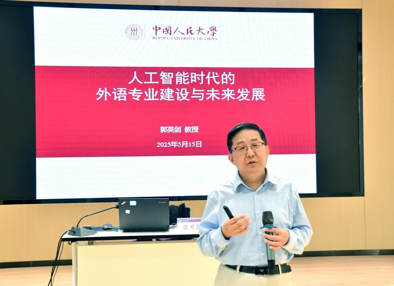 5月15日下午,中国人民大学郭英剑教授在公司楼2楼报告厅作了一场题为“人工智能时代的外语专业建设与未来发展”的专题讲座,经理孙瑜、党委书记王高祖及60余名师生到场聆听。