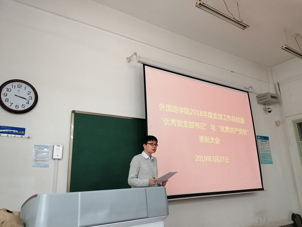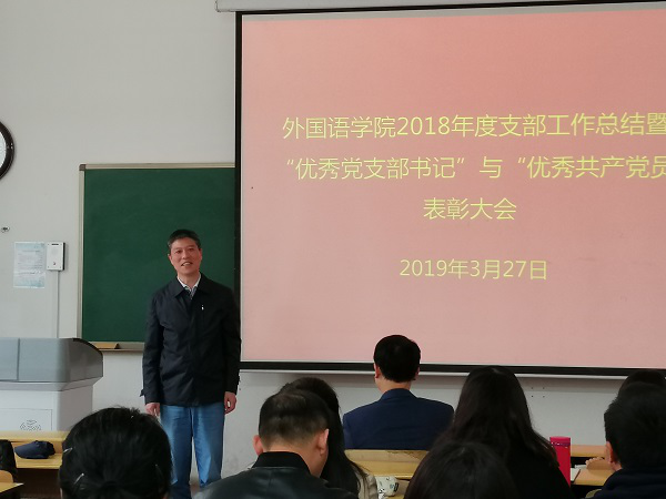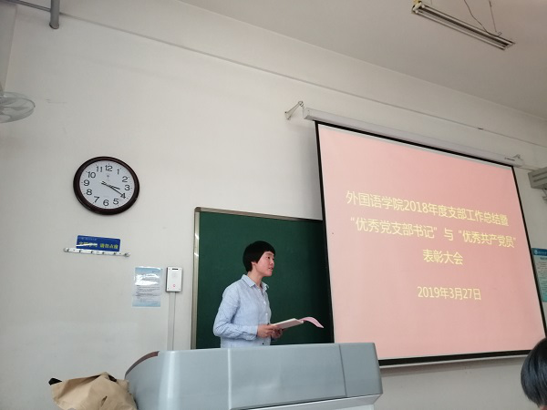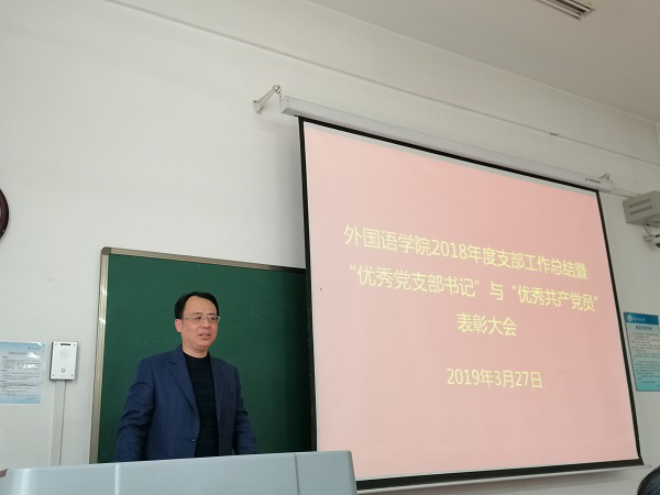 2019年3月27日,外国语公司党委在友谊校区西馆X101教室举行2018年度支部工作总结暨“优秀党支部书记”与“优秀共产党员”表彰大会。公司党委委员、各教工支部委员、受表彰党员以及党员代表参加了会议,会议由公司党委副书记高敏主持。