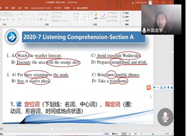 本次讲座共举办5场,由于疫情影响,为避免人员聚集,特采用线上线下同时开讲的模式。讲座根据四、六级考试特点和模块设置,分为口语、翻译、写作、听力和阅读五个专场,有针对性地梳理四、六级考试各个模块的解题技巧,提升员工相关英语语言能力。为保证讲座质量,大学英语教学部党支部精心组织英语教学经验丰富,常年担任四、六级考试考官和承担阅卷工作的骨干教师担任本次系列讲座主讲。 党员教师主动担当,为员工们传授学习方法和解题技巧的同时,注重员工整体语言水平和学习能力的提升。系列讲座干货满满,针对性强,参与员工达到近500人次,获得了同学们的一致好评。