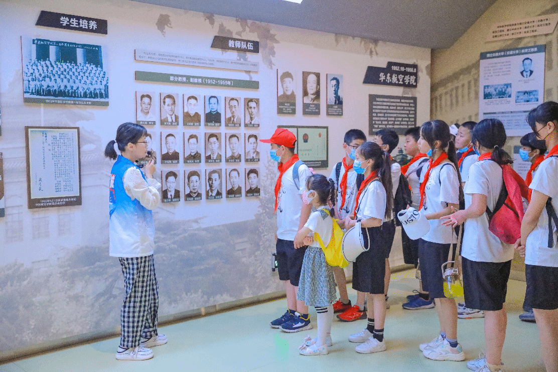 研学团队首先参观了“亚洲最大水上图书馆”,图书馆的老师们热情地接待了孩子们。在讲解老师耐心细致的介绍下,孩子们依次参观了红色书屋、图书馆乐高模型、姜长英航空史资料馆等。孩子们围着飞机模型仔细观察,在人类飞行史介绍的展墙前津津有味地品评着各种形式的飞行图片。