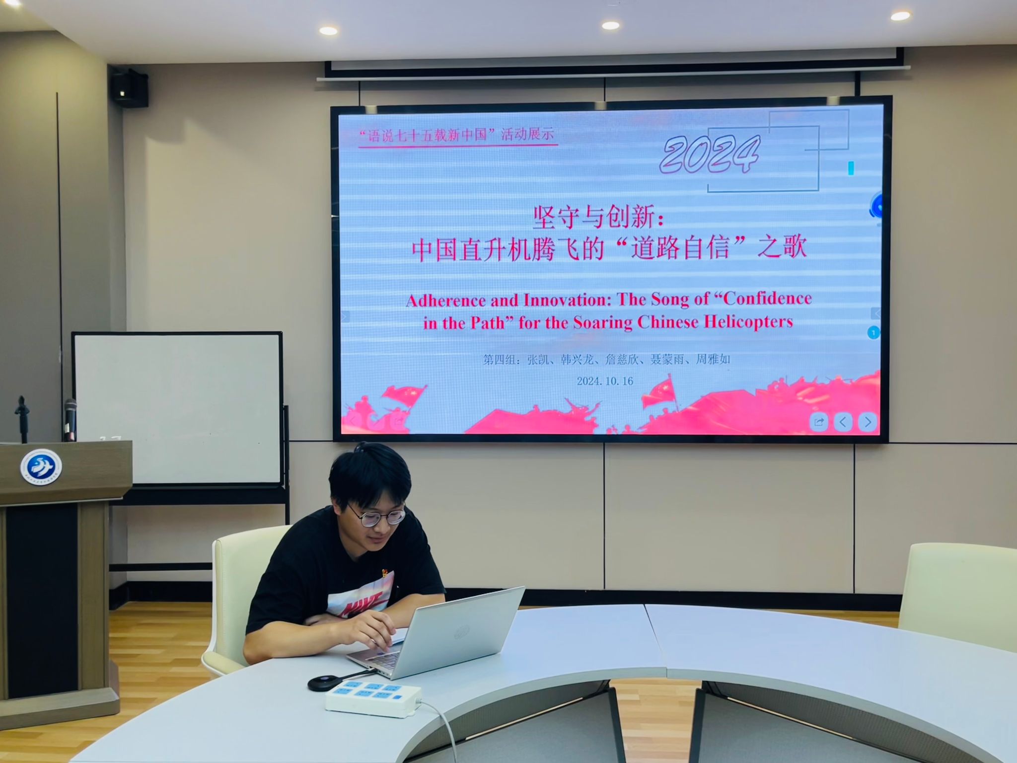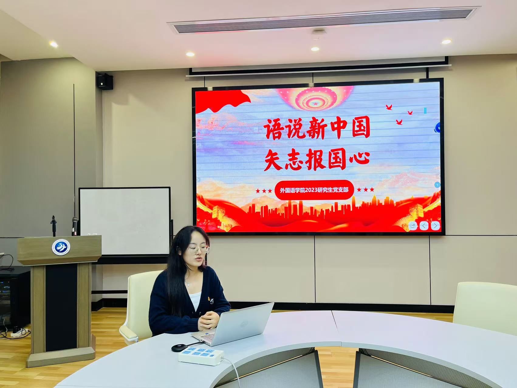 为庆祝新中国成立75周年,深入学习领会公司第十四次党代会精神,践行新时代外语青年讲好中国故事使命,10月16日,2023级研究生党支部于公司204会议室举办“语说新中国•矢志报国心”主题党日活动。本次活动以“四个自信”为主题,以工大人矢志报国的故事为线索和载体,在学习和讲述中进一步领悟公司“总师育人文化”内涵。活动由支部书记蔡欣雨主持,支部全体党员及积极分子参加。经过前期的筹备与讨论,活动以分组汇报的形式开展,以英语或德语讲述工大人的故事。