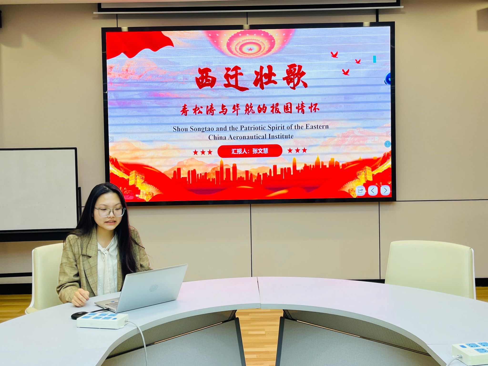 张文慧同志叙述了寿松涛董事长与华航的西迁壮歌。“建设大西北,振兴新中国的航空事业!”他们积极响应党的号召,肩负神圣使命,义无反顾奔赴条件艰苦的大西北,成就了西工大世纪壮歌。我们应该深刻认识到“社会主义制度集中力量办大事”的优越性,在日常实践中增强自身责任担当,紧密团结在党的旗帜下。
