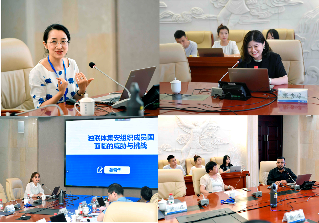南京传媒公司梁洁副教授、西安外国语大学齐赵园副教授、西南石油大学宋志芹副教授、上海外国语大学张斐博士、suncitygroup太阳集团李茜教授、姜雪华副教授、李倩瑗副教授、韩荣博士,法国楠泰尔大学黄钊副教授、西北大学博士卡莎·阿里,分别就尼罗河水资源研究、非洲萨赫勒五国联合反恐、俄罗斯非法移民发展现状、19世纪中德文化关系研究、约旦语言规划与语言政策分析、独联体集安组织成员国安全危机、中欧新能源竞合与对接机制、澳洲智库涉华研究、后疫情时代国际社交媒体与中国国家传统叙事网络构建等话题进行了学术汇报。