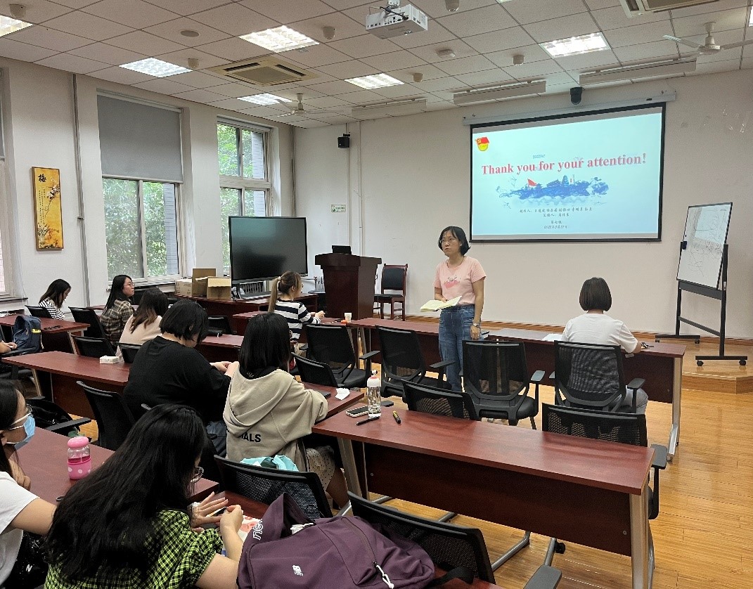 接着,郭昕对此次汇报进行了总结。她首先强调同学们要不断加深党课理论知识的学习,并提醒同学们在准备英文微党课时一定要注意课程设计的逻辑性,最后希望外语专业的同学能够提升自身专业素质,为讲好中国故事打好基础。