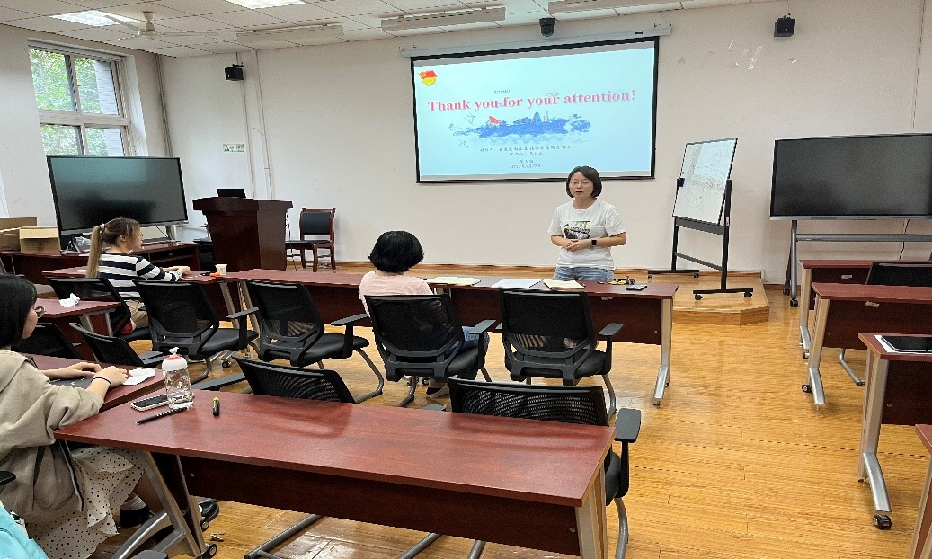 第五组由张纳川代表本组进行了汇报。通过学习,他们认识到:外语专业的老员工不仅要增强自己的跨文化交际能力,更要培养爱国意识,承担起新时代用外语讲好中国故事、传播中国文化的责任。