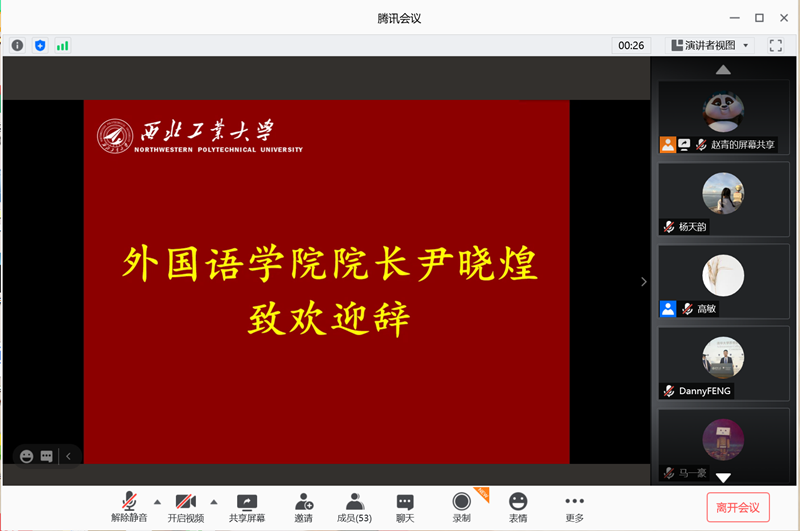 首先,远在美国的尹晓煌对两位优秀企业家的到来表示祝贺。他表示我国外语人才在过去和现在都将大有可为,在新时代“讲好中国故事”的背景下,外语学科可迁移性强、就业前景优,具备优质的发展潜力,希望能够借助校外班级导师的力量为同学们的在校学习、就业创业、视野开拓等方面提供帮助,也希望同学们能利用好公司的资源和平台,找准自己的定位和方向。