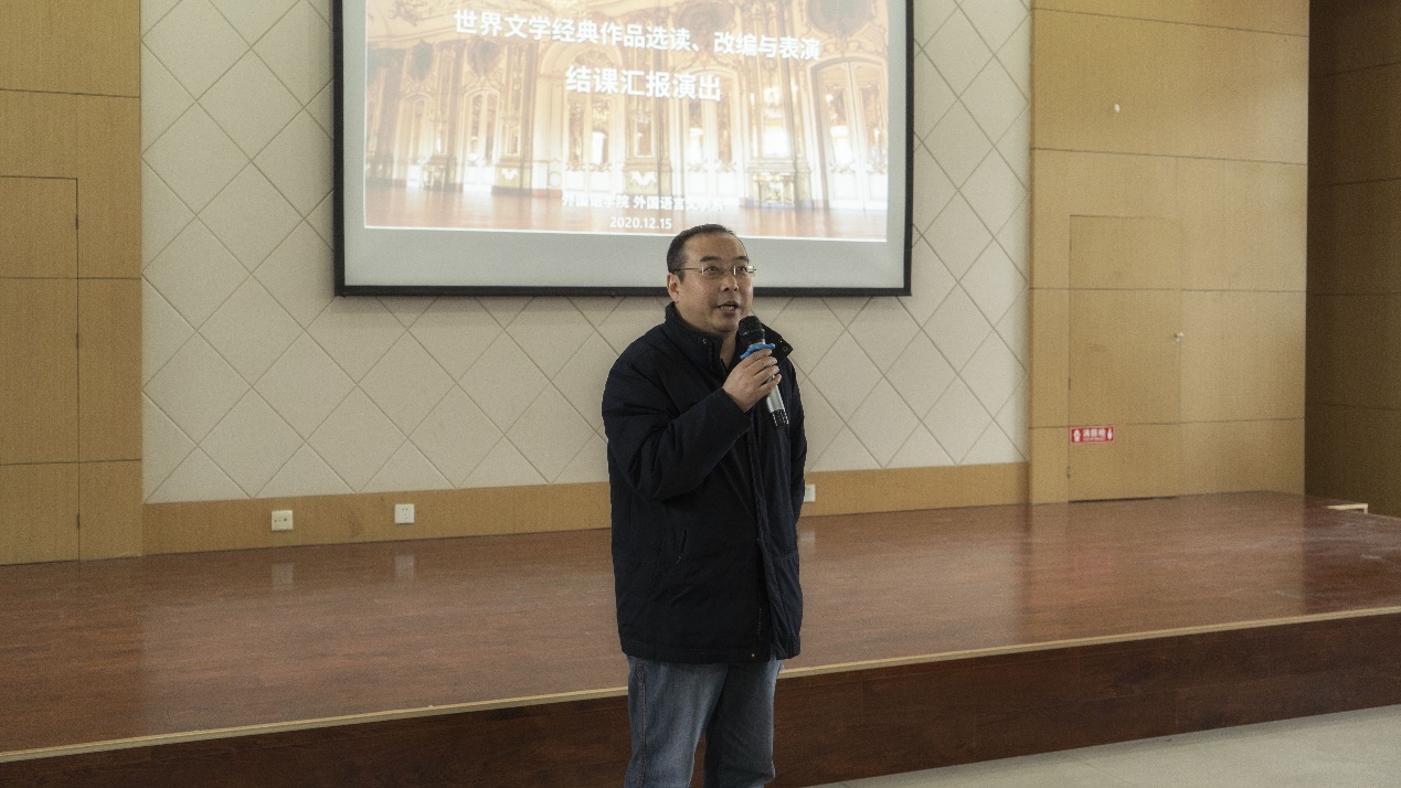举头为夏、俯首是冬。近日,首批专业综合设计类课程《世界文学经典作品选读、改编与表演》在长安校区举行汇报演出。公司党委书记侯亚涛,副经理周爽、臧小佳,党委副书记高敏,外国语言文学系系主任、课程负责人李利敏,办公室主任王晓丹,本科教学秘书崔诗晴以及全体任课教师来到会场,欣赏了同学们精心准备的课程汇报。