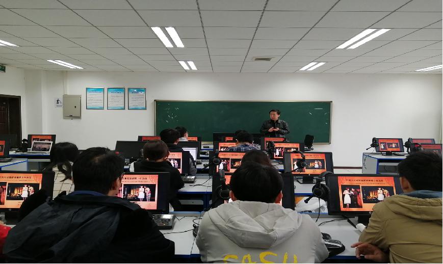 丽日当空,207报告厅座无虚席。首先,侯亚涛做了讲话,他认为这门课程形式内容新颖,鼓励师生们将这门新课越办越好,创办出公司特色和品牌。随后,李利敏介绍了课程简况和教学过程。一张张师生深入交流、打磨节目细节的照片,一份份收获满满、饱满真情实感的课程报告,都让在场的师生们迫不及待的想要看到同学们的表演。