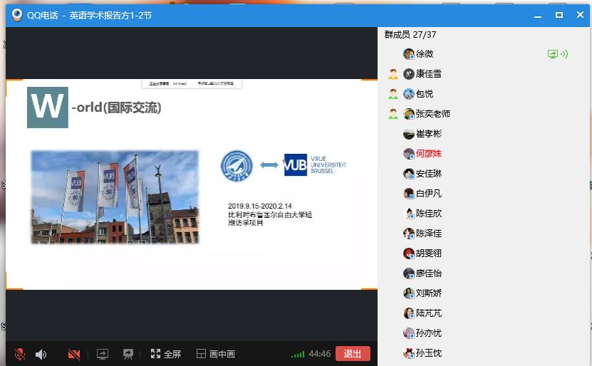 2018级在读研究生徐微也分享了读研的成长和收获,她介绍了自己的奖学金获奖情况、学术成长过程、多次受集团资助参加国际会议的经历以及在比利时布鲁塞尔自由大学短期访学的经历。她以自己的切身感受向同学们表达了本校读研的无悔青春和对集团、公司、导师的感恩之情。