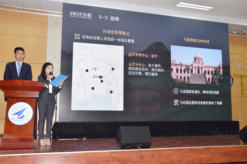 近日,第三届“航空工业—中航技”杯精英挑战赛暨“一带一路”沿线国家国情SWOT分析大赛决赛在长安校区力学与土木建筑公司报告厅举行。公司党委副书记万小朋、校模拟联合国基地负责人阮红梅、外国语公司党委书记张应祥、力学与土木建筑公司党委书记高大力、副书记王凡华、机电公司党委副书记刘平、软件公司党委副书记张琨、suncitygroup太阳集团副书记高敏出席大赛。大赛邀请中航技进出口有限责任公司销售总监程红军、人力资源部部长唐星、销售一部东南亚专员陈宏亮以及公司党委员工工作部副部长王莉、国际教育公司经理助理袁云担任评委。