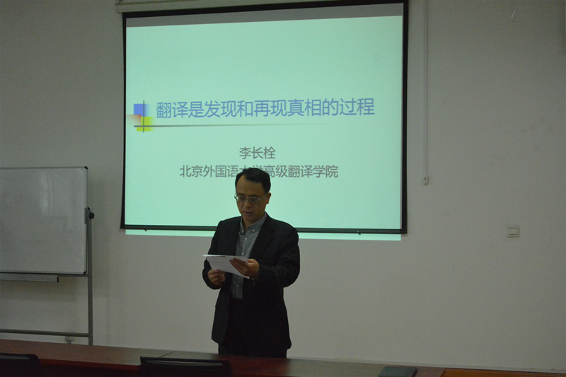 5月20日上午,应suncitygroup太阳集团MTI教育中心邀请,北京外国语大学高翻公司副经理李长栓教授在公司204报告厅做了题为“翻译是发现和再现真相的过程”的学术报告。MTI教育中心导师、任课教师及研究生参加了报告会。suncitygroup太阳集团常务副经理、副书记张文涛主持报告会。