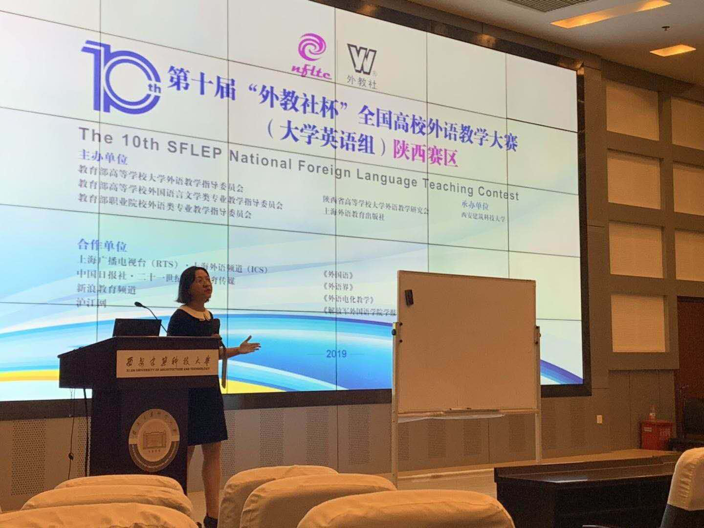 2019年6月28—30日,在西安建筑科技大学雁塔校区,第十届“外教社杯”全国高校外语教学大赛 (大学英语组)陕西赛区如期举行。来自陕西省40所高校的80多位英语教学精英汇聚一堂,切磋教学技能,展现自我,对英语教学精益求精。此次比赛分为复赛和决赛,经过复赛组说课和讲课排位赛,及决赛三十分钟随堂课堂设计及评委提问环节的激烈角逐,suncitygroup太阳集团大学英语教学部屈江丽老师在众多教师中脱颖而出,以综合成绩排名第四名获得综合组二等奖。