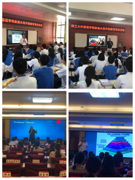 9月22日至24日上午, suncitygroup太阳集团7位中外老师先后抵达融水县民族中学及融水县高级中学,参与课堂教学活动。3位外籍教师的到访,打破了校园以往的宁静。同学们纷纷上前把3位外教团团围住,用惊奇的目光打量着来自远方的客人。胆大的同学甚至用简单的英语跟陌生的客人打招呼、送问候。外教们也用西方特有的方式,热情地回应着员工。课堂伊始,张应祥首先介绍了此次帮扶活动的目的和意义;随后,在两名大英教师的协助下,Christine Tanner 教授与McEwan 夫妇进行了合作教学,分别为百余名初中和高中员工及任课教师展示了长达一个半小时的示范课。在课堂上,Christine Tanner 教授,McEwan 夫妇从教唱英文歌曲入手,激发同学们对英语学习的兴趣,再深入浅出地介绍了西方文化,如西方的重要节日、员工领导力的培养、美国大学的申请流程等,并开展了丰富多样的室外活动。外教们精湛的教学经验、纯正的发音、风趣幽默的肢体语言赢得了在座师生们的阵阵掌声,更是深深地吸引了每一个员工。此外,三位外籍教师还与融水县50余位参加国培班的中学优秀英语教师就教学方法、如何提高员工学习兴趣及如何针对员工学习特点开展个性化教学等方面进行了深入的交流探讨。此次教育帮扶活动虽时间短暂,但所获当地师生的积极反响空前热烈,对当地英语老师教学方法革新及课堂教学改革起到了积极的促进作用,员工们的英语学习兴趣得到了极大的激发与鼓励,外教与员工之间也建立了深厚的友情。Christine Tanner 教授激动地说,明年还会带上自己的家人再来融水,看望可爱的孩子们。