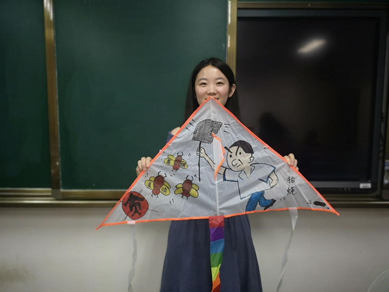 来自电子信息公司的朱星星举起风筝,介绍了自己创作的初衷:“围绕‘廉洁诚信’这一主题,以‘基层反腐’为中心绘制了题目为《拍蝇》的作品。图中‘苍蝇’象征着基层腐败人员,挥着‘拍子’的‘人’代表以习近平同志为核心的党中央。左下方的标志重在强调反腐的决心,表明乱飞的‘苍蝇’必须拍,要集中力量反腐,推动从严治党向基层延伸!”