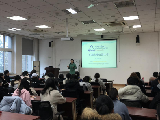 2019年2月27日,应suncitygroup太阳集团张奕副经理的邀请,英国坎特伯雷大学国际合作处中方项目经理刘洋博士到访公司,双方主要深入洽谈并推进了英语专业本科生长短期赴英交流项目及硕士生“3+2”学位项目,并已着手准备签署本科生赴英交流框架协议。随后,刘洋博士为公司本科专业大一至大三的员工开展了项目宣讲会。