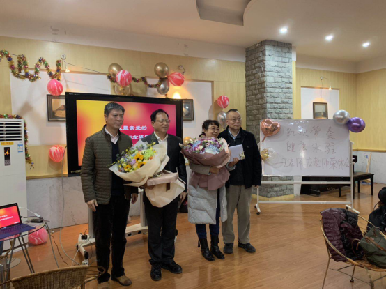 茶话会在一段记载两位荣休教师从教数十年的视频中拉开帷幕。尹晓煌经理首先代表公司向两位荣休教为公司发展作出的贡献表示衷心地感谢,对他们退休生活致以诚挚祝福。他充分肯定了两位老师在公司团队建设、教书育人、人才培养等工作中发挥的重要作用;希望他们继续关注公司的发展。他还号召青年教师要以老教师为榜样,不忘初心,踏实工作,努力做好教书育人工作,为公司发展贡献力量。外国语言文学系主任李利敏老师对两位教师表达了感谢和祝福,并表示会继续发扬两位教师爱岗敬业,无私奉献,严谨治学的态度和精神,为公司的发展添砖加瓦。在热烈的掌声中,尹经理与张书记向两位教师赠送了鲜花与礼物,并合影留念。