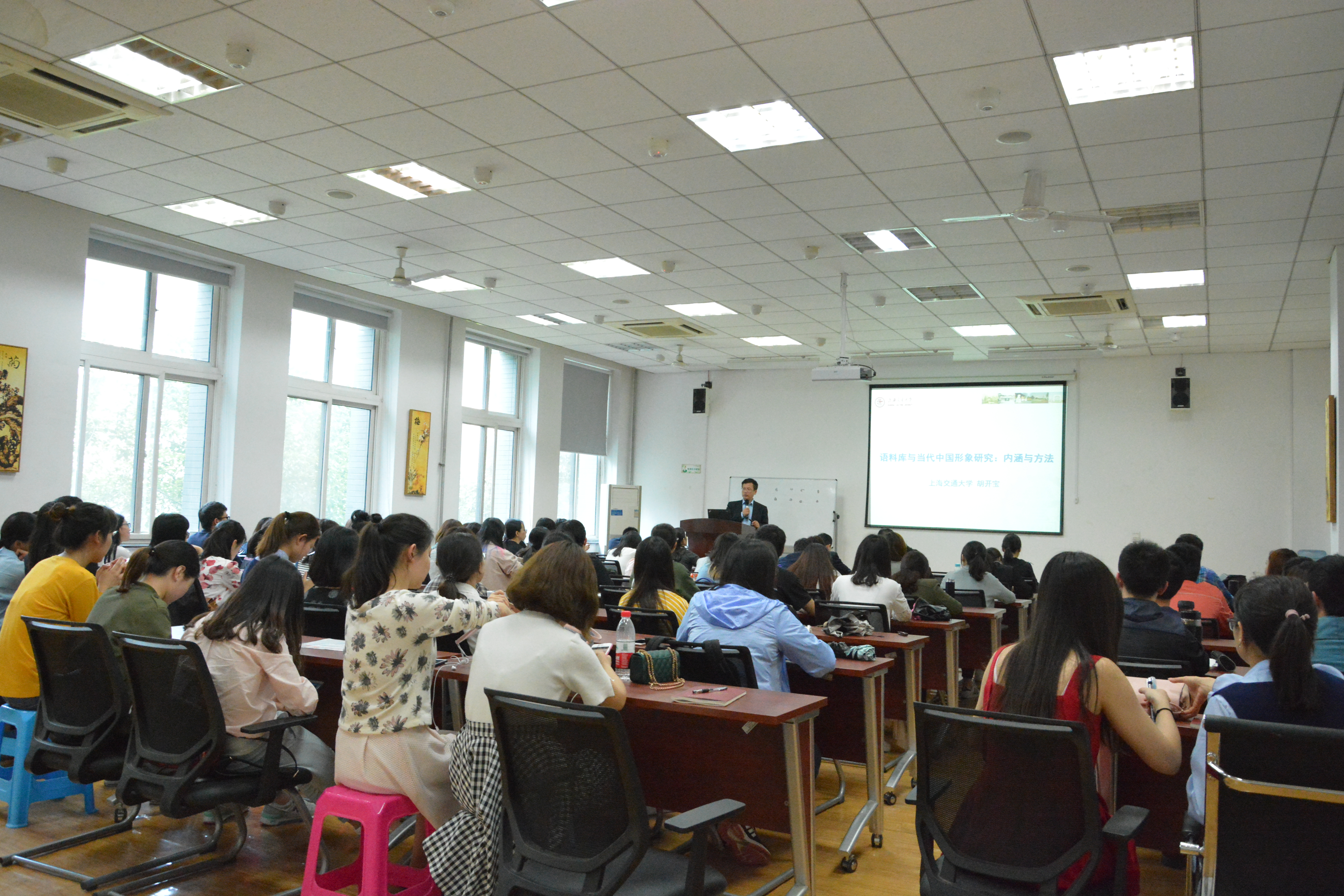 胡教授从国家形象的界定与属性、当代中国形象研究述评、和基于语料库的当代中国形象研究—内涵与方法三个方面对语料库在翻译中的应用进行了详细的介绍。胡开宝教授通过“西工大形象”,“上海交大形象”“国家形象”,“特朗普心中的中国形象”、“印度人心中的中国形象”等事例生动地向在场听众再现了语料库的重要作用。胡教授提出将语料库与计算机技术有效结合在一起,可以观察到大量语料,提取速度快,发现肉眼所看不到的东西。