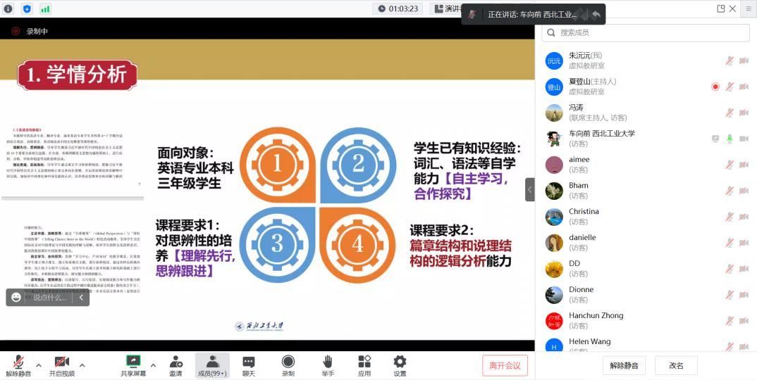 2023年3月29日,高等公司“理解当代中国:英语读写教程”虚拟教研室第五期教研活动成功举办。活动面向全国使用该系列教材的外语教师开展,由《英语读写教程》副主编、北京外国语大学夏登山教授主持,公司外国语言文学系英语教研室朱沅沅副教授和车向前副教授进行了教学案例示范。