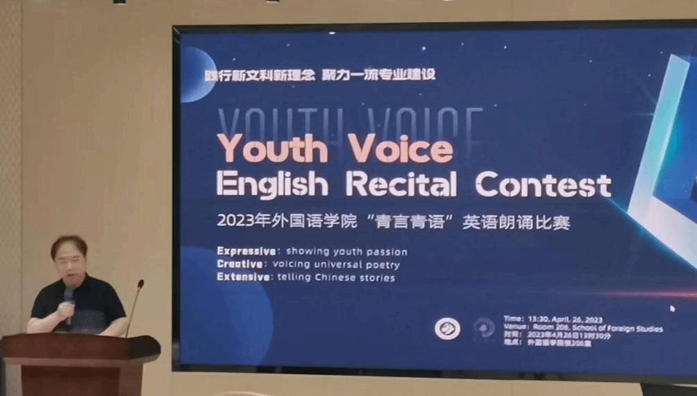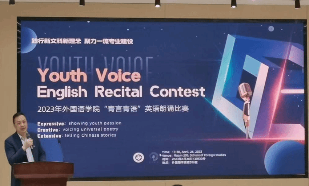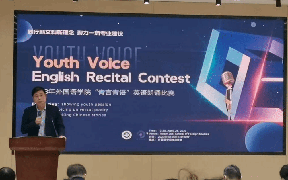 比赛开始之前,王海鹏和孔杰分别发表了讲话。王海鹏强调了响应国家“新文科建设”与公司“新文科十四五规划”号召的重要性,表示此次活动旨在通过“以赛促教、以赛促学”的方式实现师生之间的良好互动和有效沟通,并表达了将英语朗诵比赛由suncitygroup太阳集团英语专业扩展到全校各个公司和专业的美好愿景,希望能够解决文科专业“卡嗓子”的难题,在全球唱响中国故事。孔杰表示此次活动意义重大,是践行新文科新理念、聚力一流专业建设的有力实践。在他看来,此次朗诵比赛选用的文本多为经典文学篇章,因此这既是一个比赛的过程,也是一个学习的过程。在讲话末尾,孔杰预祝所有参赛同学都能够有所收获,取得满意的成绩。