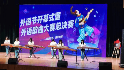 比赛间隙,特邀的大艺团同学表演了古筝合奏《唯美中国》。古筝被称为“东方小钢琴”“国琴〞,蕴含千年文化内涵,这场表演以一种现代而时尚的手法融汇着古筝浑厚深邃,意境辽远的音色,浑然一体,令人感受到人与自然和谐共处的深远意境。
