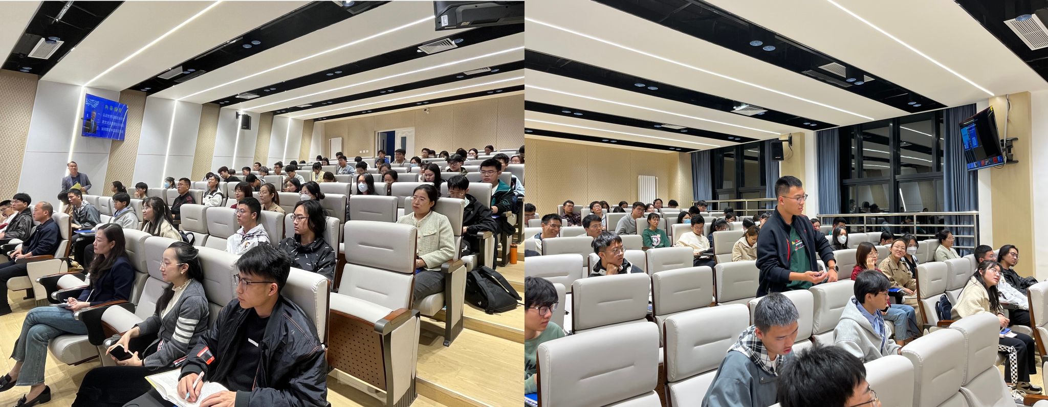 讲座中,宋允孚与同学们进行了亲切的互动、交流。整场讲座内容丰富翔实,语言幽默生动,与会员工受益匪浅。宋先生寄语有志青年们,坚定爱国信念,关注国际形势,不负时代,不负韶华,为构建人类命运共同体贡献自己的一份力量。