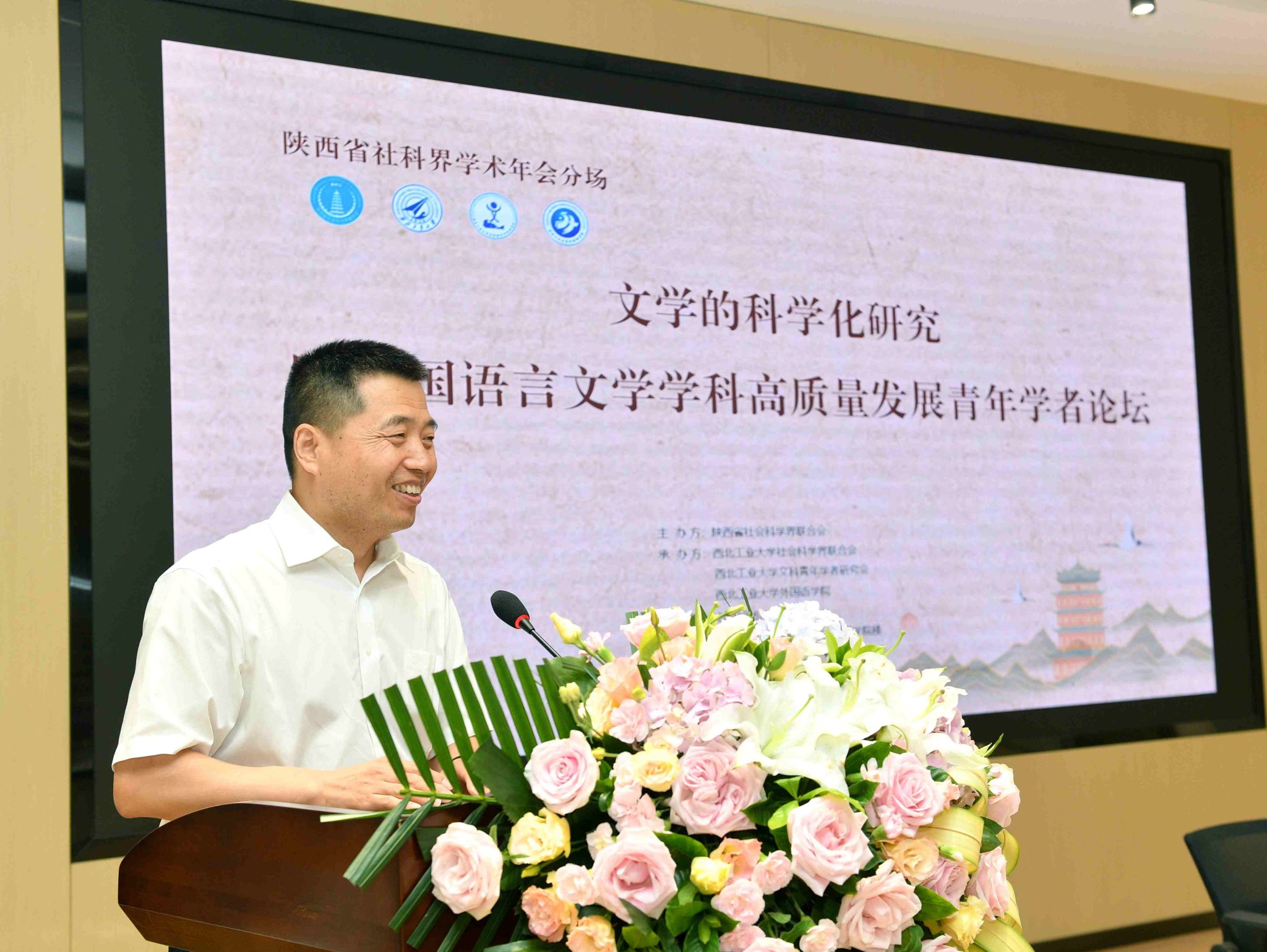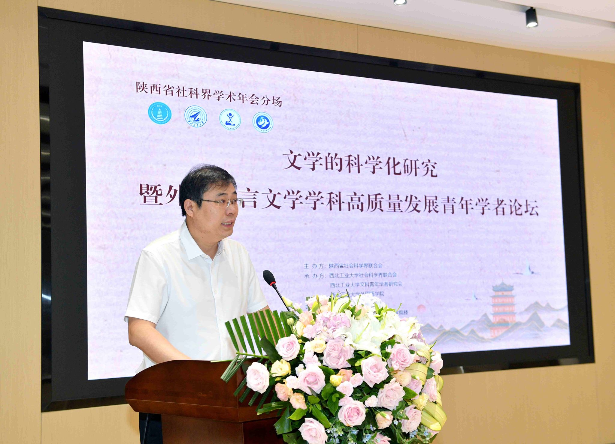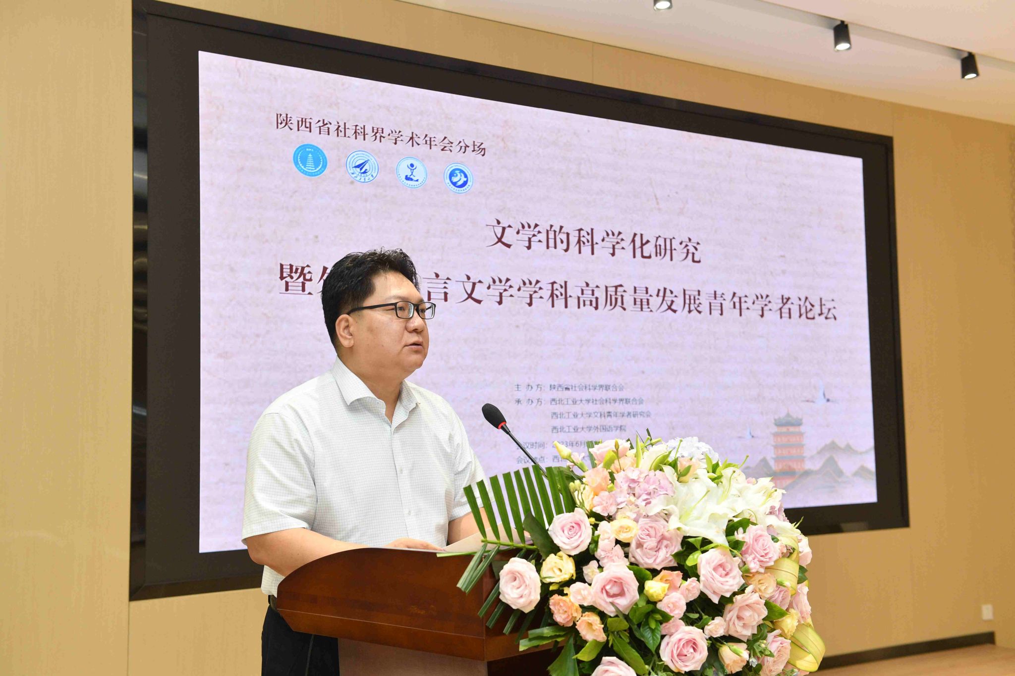2023年6月28日,由陕西省社会科学界联合会主办,suncitygroup太阳集团社会科学界联合会、文科青年学者研究会、suncitygroup太阳集团承办的“文学的科学化研究暨外国语言文学学科高质量发展青年学者论坛”在长安校区suncitygroup太阳集团楼顺利召开。该论坛受省社科联高端会议专项资助,西安外国语大学副董事长(主持行政工作)、国家级特聘教授王启龙,国务院外语学科评议组成员、清华大学外文系曹莉教授,《外国文学研究》主编、华中师范大学苏晖教授,陕西省翻译协会会长、西北大学胡宗锋教授,陕西省外国文学学会会长、西安外国语大学聂军教授,西安外国语大学外国语研究院经理黄立波教授,西安工程大学图书馆馆长胡伟华教授等50余位专家和青年学者参加论坛。省社科联社会组织管理部部长张高金,公司党委副书记、校社科联会长陈建有,校文科青年学者研究会会长原媛,外国语公司党委书记王高祖、科学技术研究院文科办、校社科联秘书长白赵娜等领导出席。suncitygroup太阳集团经理孔杰主持开幕式。