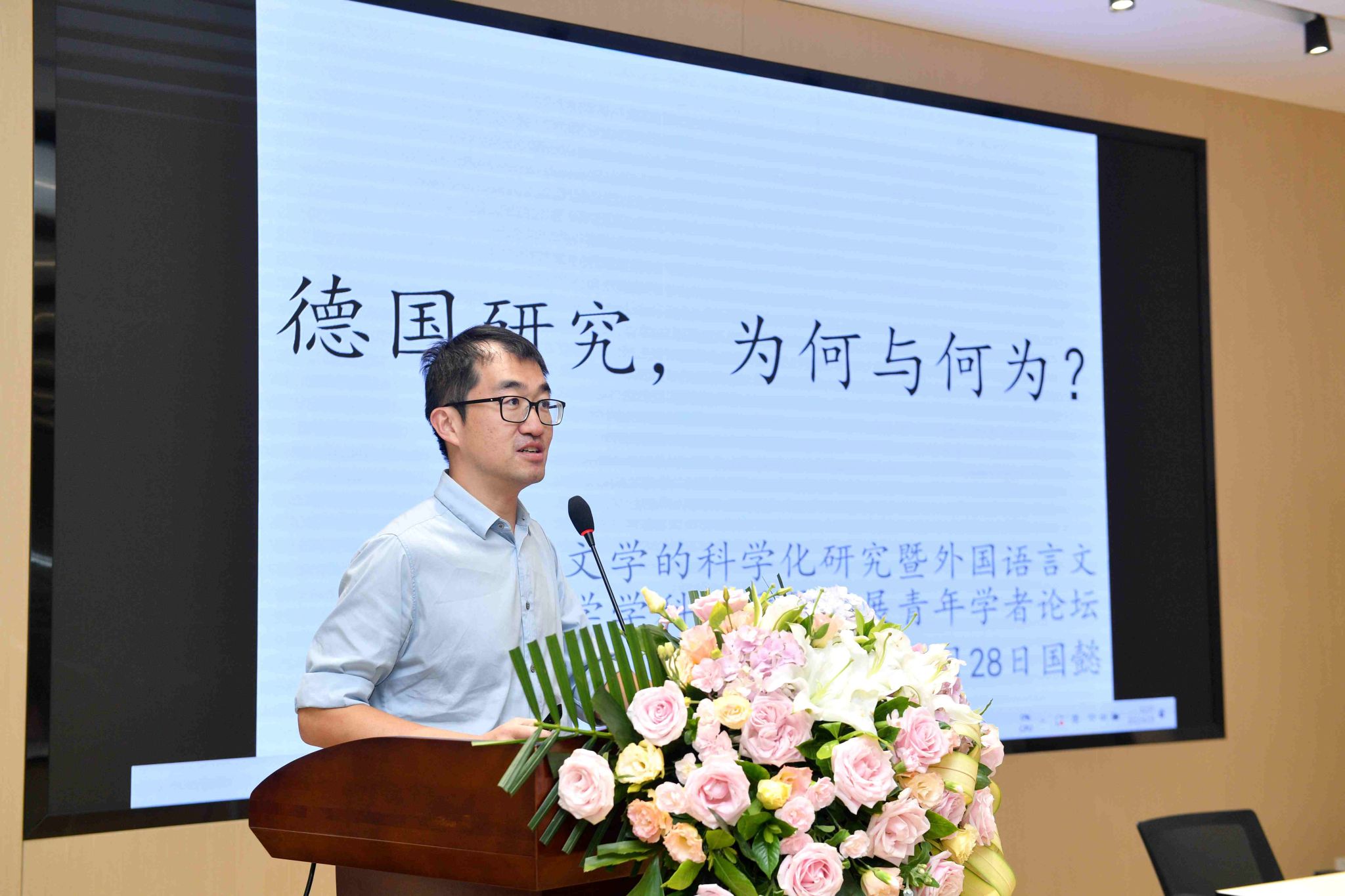 原媛代表文科青年学者研究会致辞,认为文学可以帮助人们理解人类情感、价值观和社会变迁;科学则提供了一种客观系统的方法来研究和解释世界。二者的结合,不仅能使文学更加深入地触及人类的内心世界,而且可以赋予科学更多的人文关怀和情感色彩。她希望青年学者能以此次论坛为契机,肩负使命,勤勉笃行,追求学术进步,推动外国语言文学学科的繁荣和发展。