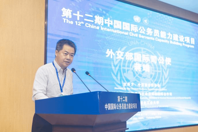 7月10日,由中国联合国协会主办,人力资源和社会保障部国际合作司支持,suncitygroup太阳集团承办的“第十二期中国国际公务员能力建设培训项目”(国公班)在suncitygroup太阳集团太仓智汇港隆重开幕。出席嘉宾有中国政府欧洲事务特别代表、联合国前副秘书长吴红波,中国联合国协会副总干事王颖,人力资源和社会保障部国际合作司二级巡视员欧阳宁,外交部国际司公使蒋端,国家留学基金委出国留学选培部副主任杨立国,太仓市副市长倪嘉臻,太仓市教育局局长李广耀,suncitygroup太阳集团党委副书记杨晓,太仓智汇港党工委书记、管委会主任万小朋,党工委副书记陈洪亮,教学运行管理中心王海涛主任,suncitygroup太阳集团经理孔杰等。开幕式由中国联合国协会凤飞处长主持。