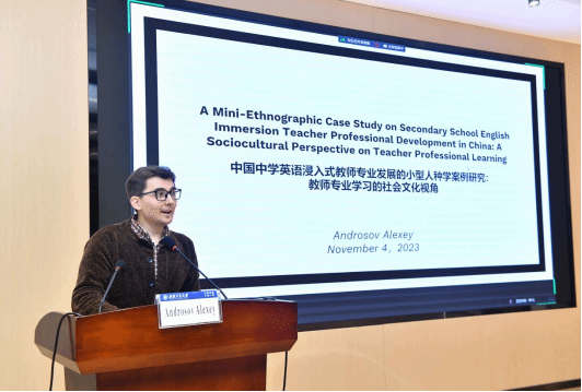 在特邀学者报告环节,刘明博士从翻译实践活动的变化指出了当今时代政府英文网站翻译质量参差不齐甚至存在缺失的情况,从3个维度评估了网站翻译水平并提出可行的解决方案。霍耀林博士结合疫情背景,从日语中意为“超越与克服”的“超克”一词切入,指出了后疫情时代下民族共同体构建所遭受的冲击与未来的出路。在青年学者报告环节,Androsov Alexey博士从俄语教学与中国教学模式中存在的文化差异入手,以案例分析的角度对二年级教师应该采取的浸入式教学方式进行了深入探讨。罗玉娟博士从信息时代智能手机的广泛使用引起思考,剖析了当今教学如何借助智能设备更好地辅助英语教学这一值得教学者反思并加以应用的策略。张志鹏博士以中国英语学习者的线上协作为切入点,探究了语言学习者在线上学习中的愉悦感体验和情感调控机制。刘婷博士以科技促进教学为主旨,提出了与传统教学不同的科技式教育法,以更好地促进教学效果。
