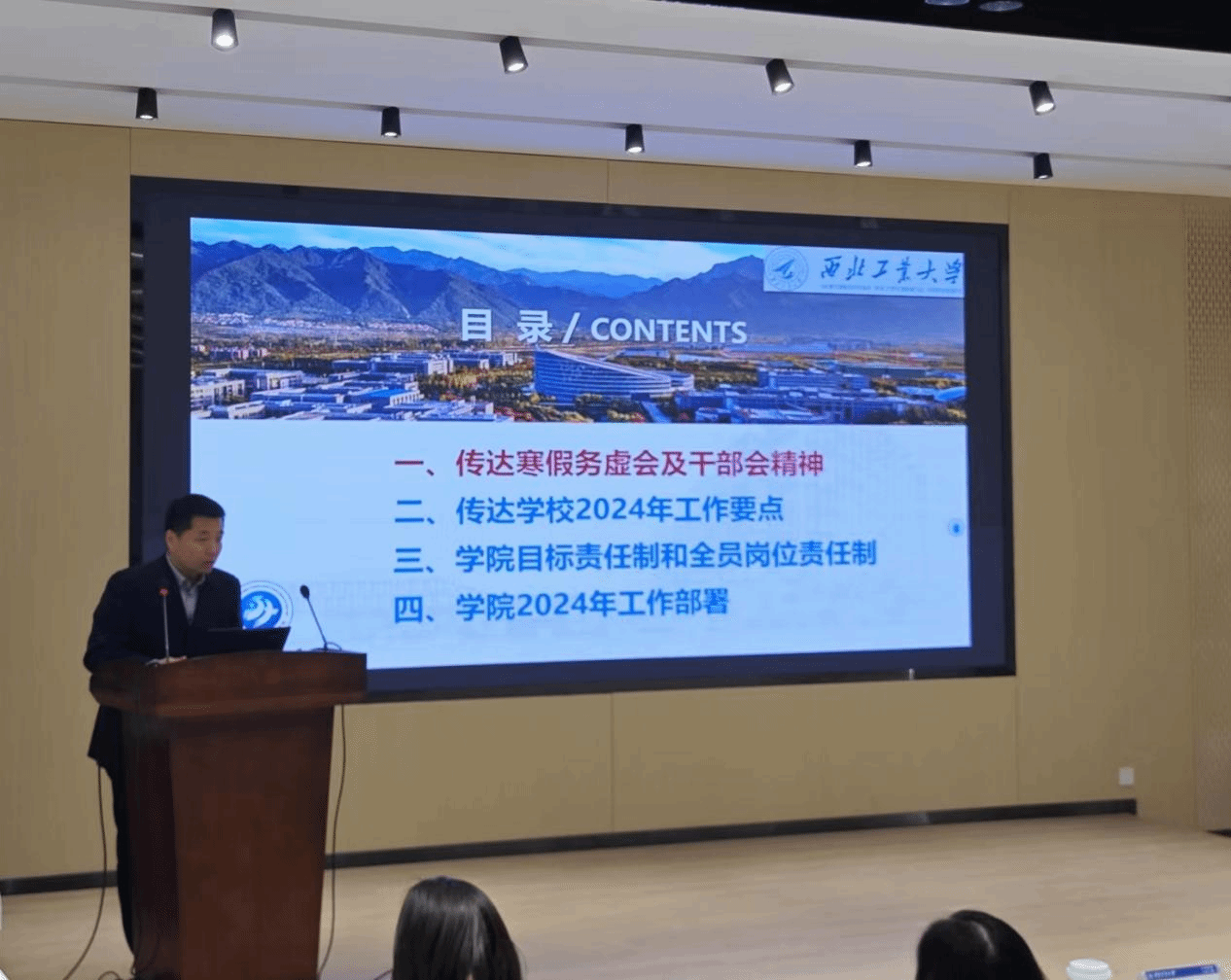 孙瑜首先介绍了新一届领导班子具体分工,随后介绍了新学期公司工作思路要点并部署重点工作。她强调,公司围绕公司“强特色、筑高峰”的总体发展思路,聚焦公司“总师型人才”培养的具体要求,对照公司团队建设、人才引育、科学研究、队伍建设等发展现状,梳理公司发展路径,明确学科发展本体方向,细化工作方案。她要求与会人员要根据公司发展的不同阶段去分析问题,夯实自身教学科研基础,明晰自己的“特色”,实现自己的“高峰”,与公司高质量完成2024-2027年目标责任制任务“同频共振”。