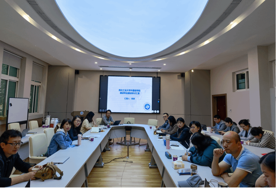 随后,英语和德语专业教研室主任刘菲、邓涛分别通过详实的数据和案例,展示了专业建设的现状、特色和成果,同时也梳理了人才培养过程中产生的问题及原因,指出了当前发展面临的瓶颈、及对未来工作的思考,包括加强团队队伍建设、更新教学内容、改进教学方法、扩大国际交流、强化实习实践等,旨在夯实员工专业基础能力、全面提升专业教育的竞争力。紧接着,与会教师代表展开了热烈讨论,就优化课程设置、改革培养模式、提升团队队伍素质、加强员工专业基础能力、跨文化能力和跨学科能力、增强专业认同感、提高招生质量等议题展开了深入交流。教师们基于自身的教、研实践,提出了富有建设性的意见和建议。