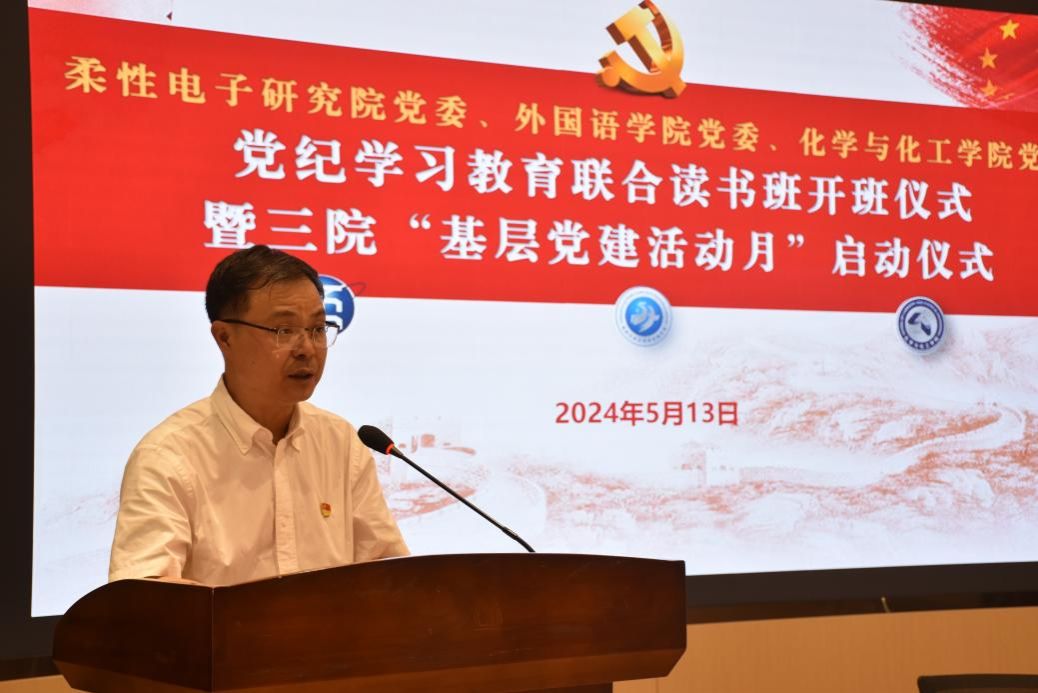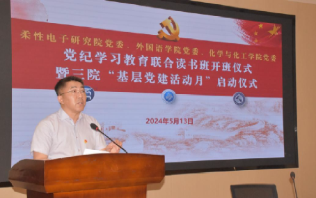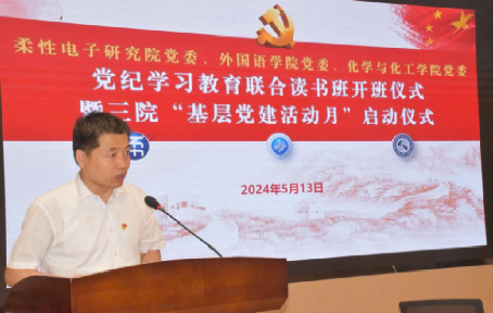 柔性电子研究公司党委书记高建伟宣读了关于联合开展“基层党建活动月”的通知,要求三个单位要以习近平新时代中国特色社会主义思想和党的二十大精神为指导,通过理论学习、教育培训、联学共建等特色活动推动党支部的创造力、凝聚力和战斗力持续提高,党员干部队伍的学纪、知纪、明纪、守纪意识不断增强,基层党组织工作规范化水平、党建工作能力和水平、党建引领高质量发展成效进一步提升。