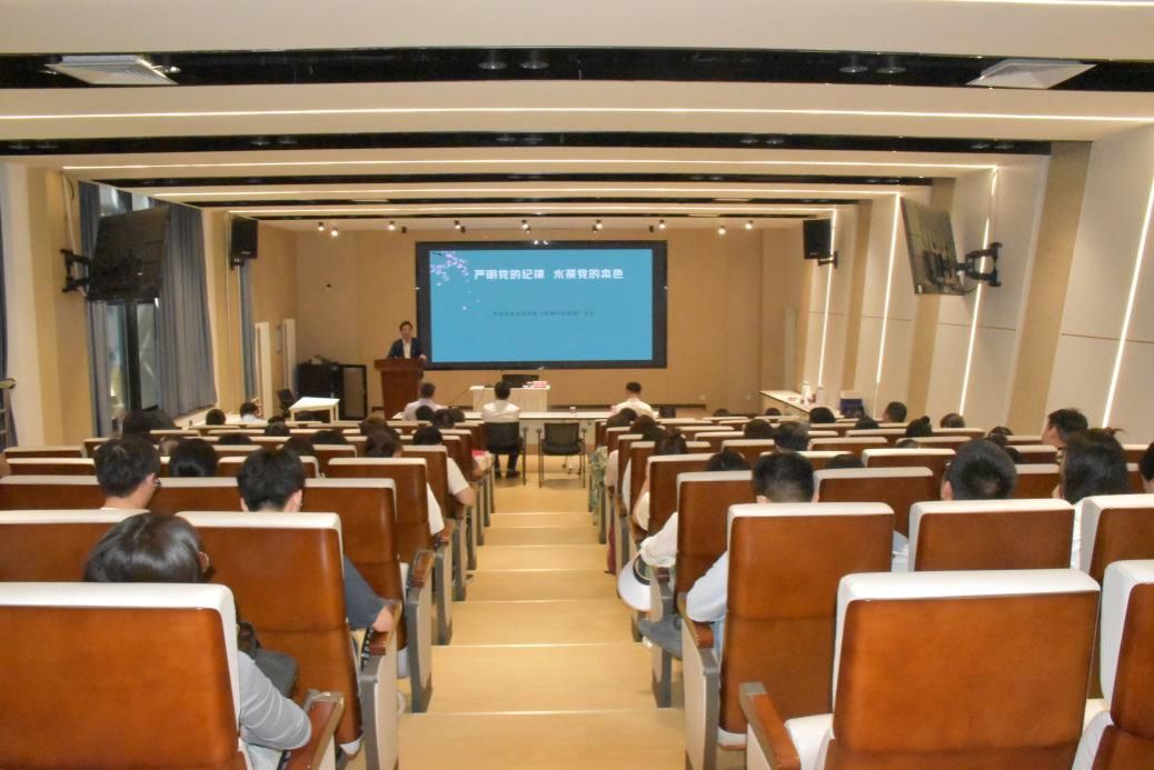 仪式结束后,随即进入党规党纪专题报告环节。吴永教授在题为《严明党的纪律,永葆党的本色》的专题导学报告中,从“中国共产党为什么高度重视纪律建设”入手,结合史料文献和典型案例阐释了党的百年纪律建设历程。他强调,党的十八大以来,以习近平同志为核心的党中央把纪律建设摆在更加突出、更加重要的的位置,把纪律建设作为全面从严治党的治本之策,把反腐败斗争贯穿于党的建设全过程。吴教授借古鉴今,以历史典故和警示案例引导党员干部学纪、知纪、明纪、守纪。