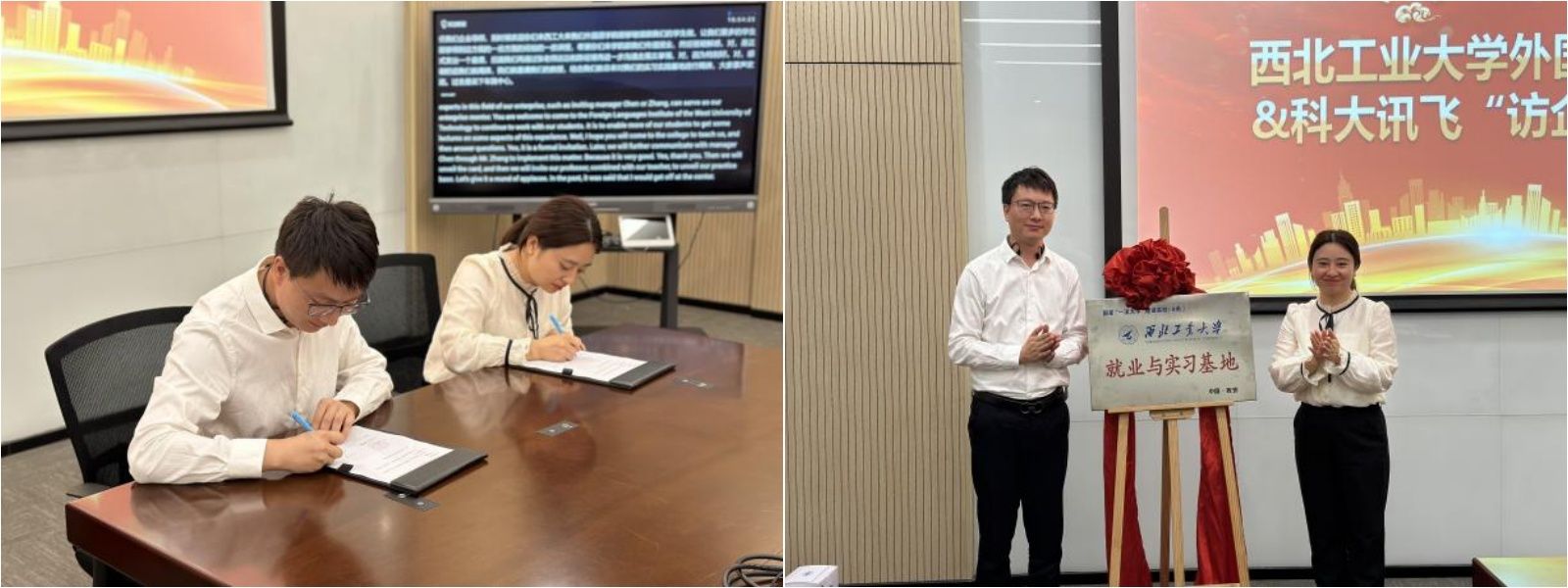 最后,焦永禄与张桑桑签订校企合作协议,在科大讯飞丝路总部为“suncitygroup太阳集团就业与实习基地”揭牌。