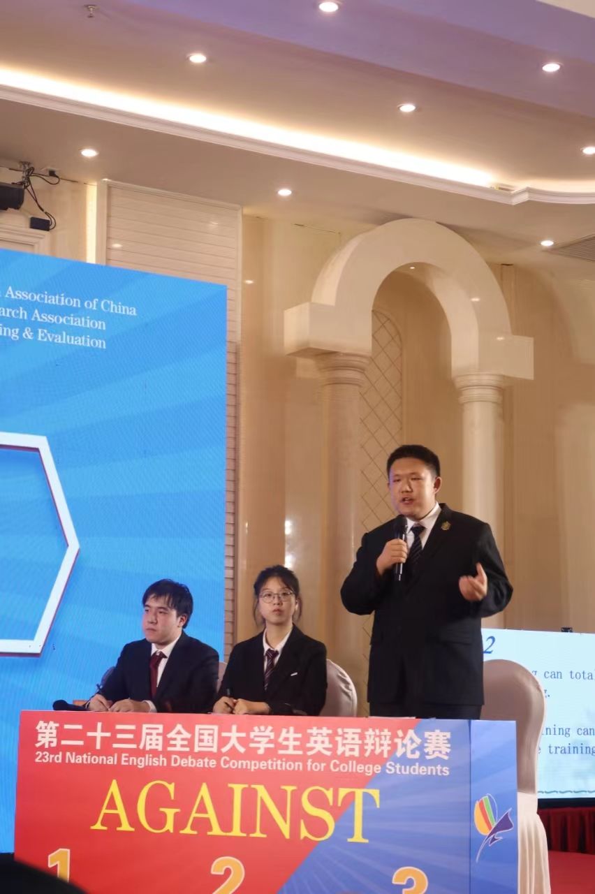 公司选手丁子亦(右一)参加总决赛英语辩论赛
