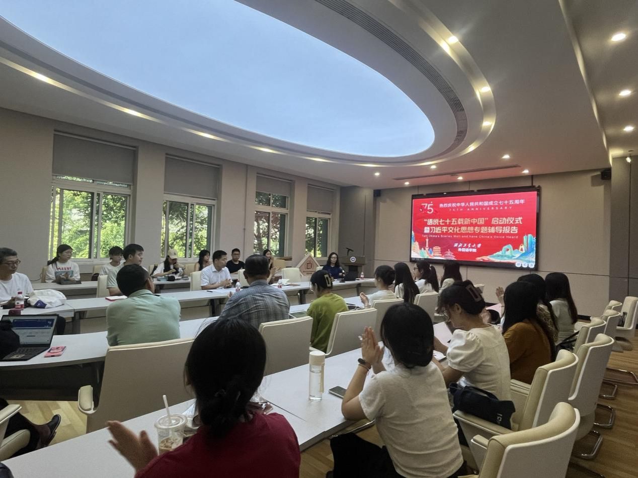 公司党委副书记张桑桑介绍了“语说七十五载新中国”的活动方案和具体安排。她指出,公司党委坚持以习近平新时代中国特色社会主义思想为指导,立足两个大局,紧扣立德树人根本任务和新时代党的建设总要求,一体谋划外语专业教育与党建、思政工作,特推出“语说中国”系列活动。本期活动以庆祝新中国成立七十五周年为契机,以“四个自信”为主题,积极践行同学、同讲、同研、同行、同践的师生“五同”党建融合育人模式,引导广大党员矢志不移爱党爱国爱社会主义,真正把外语专业的看家本领学到手,用外语讲好七十五载新中国的故事。同时,外国语言文学系党支部举办“语读二十大,献礼新时代”子活动,以多语阅读、多语诵读的方式,为“语说七十五载新中国”活动注入活力。
