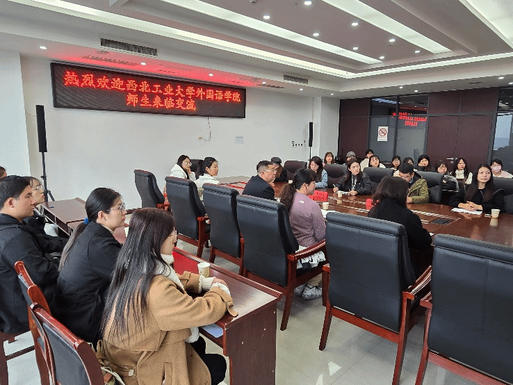 11月18日上午,实践队一行参访了临汾市文化和旅游局,并与文化和旅游局副局长马春雷、科长姚政、员工贾璠进行了座谈。马春雷热情欢迎实践队一行并介绍了临汾市在文化传承、文明互鉴等方面的经验做法,鼓励实践队员学好语言,用好新媒介,助推文化传承创新。姚政介绍了临汾市的旅游文化资源。王晓丹介绍了公司的人才培养体系以及本次实践队的主要目的。随后,双方就如何进一步挖掘本土优势资源、弘扬中国传统文化、讲好中国故事等进行了研讨,并就后期发挥外语学子语言优势,积极参与临汾市文化宣传工作的合作可能进行了探讨。座谈会期间,现任职于临汾市文化和旅游局的贾璠员工也对母校及导师孙瑜教授的精心培养表示感谢。