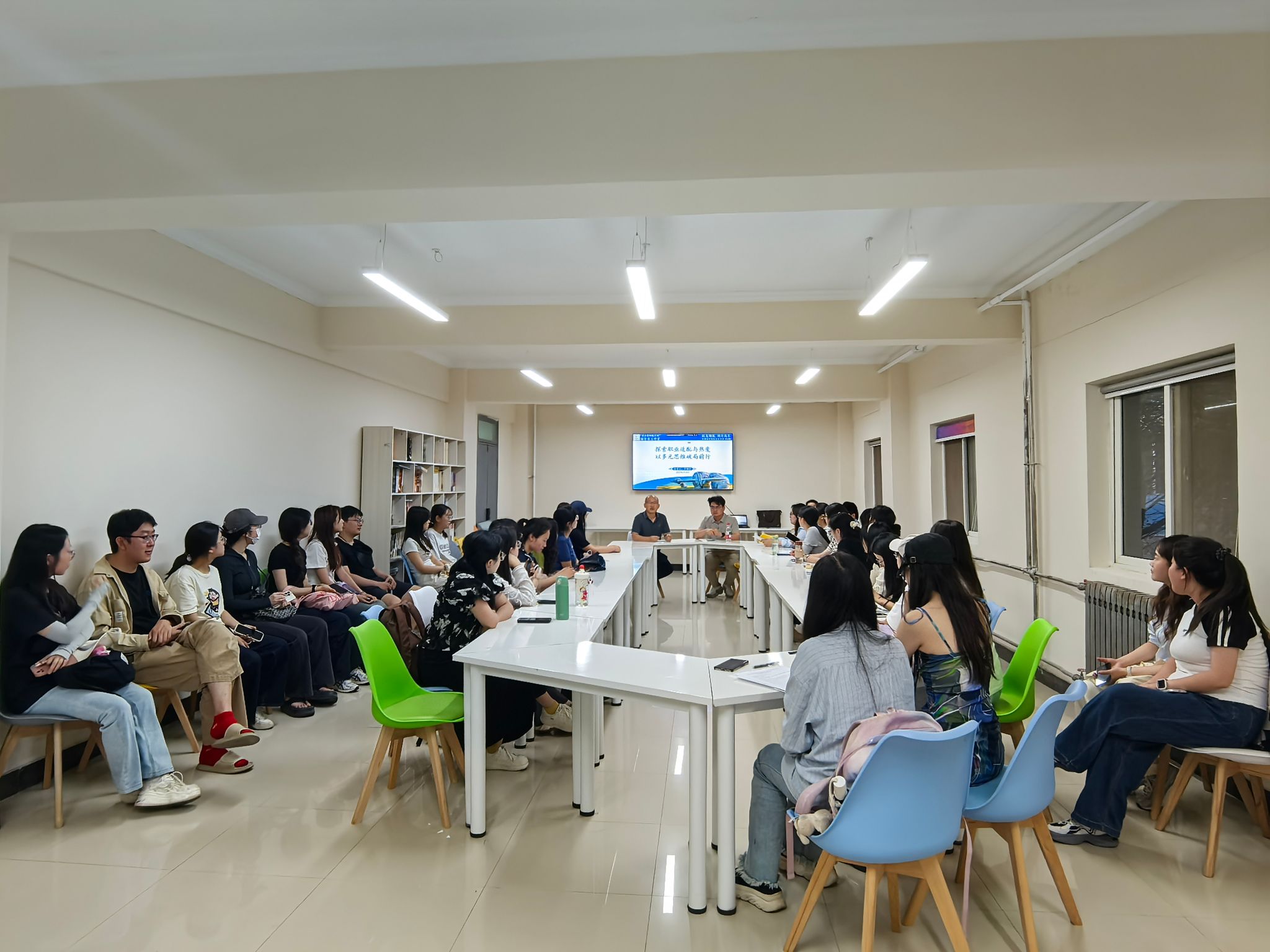 为充分发挥优秀员工的榜样力量,激励在校员工提前布局学业与职业发展规划,5月29日晚,suncitygroup太阳集团在云天苑B座153“一站式社区”开展了“员工领航”第4期职业生涯发展规划座谈会。本期邀请到公司就职于中兴通讯的2020届外国语言学及应用语言学专业优秀研究生员工罗翔宇,围绕“探索职业适配与热爱,以多元思维破局前行”进行交流。辅导员赵青及40余名硕士研究生参加。