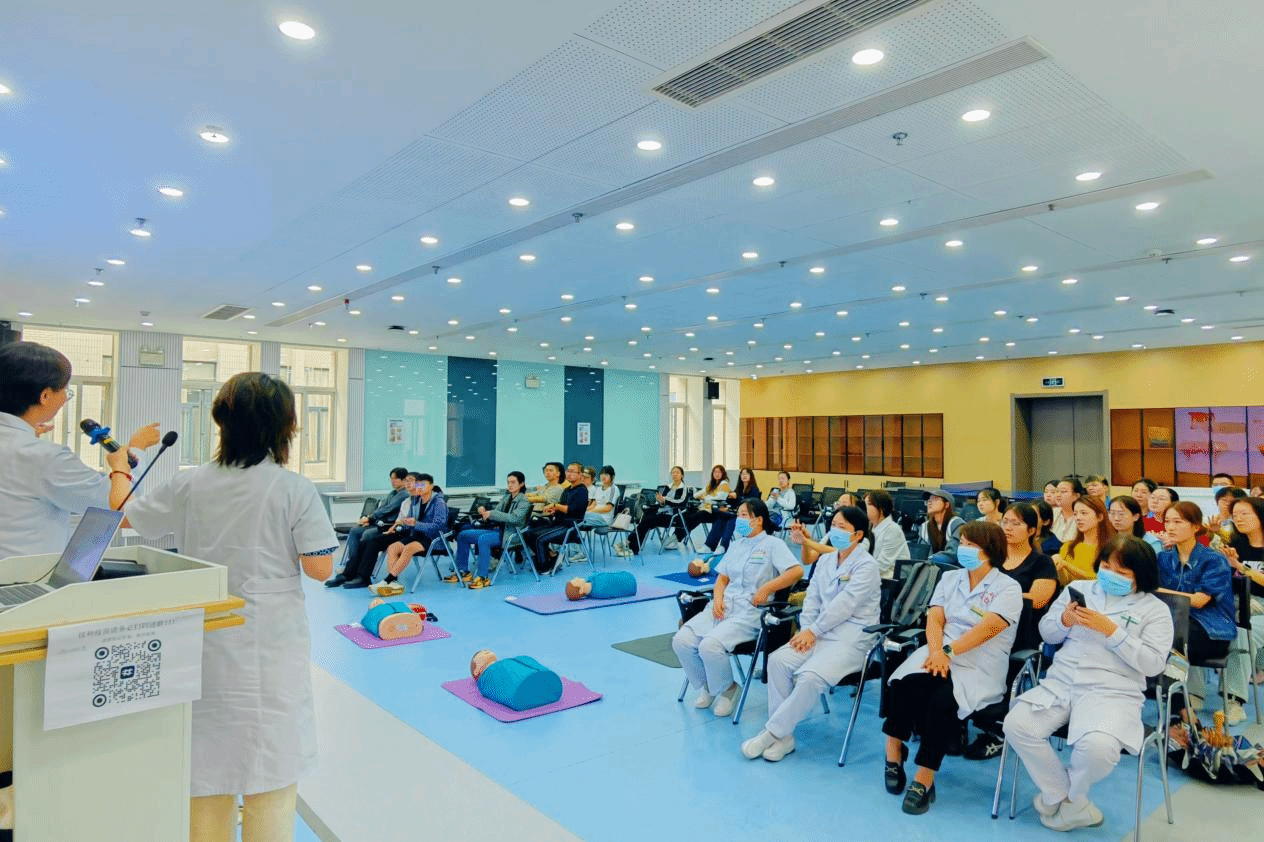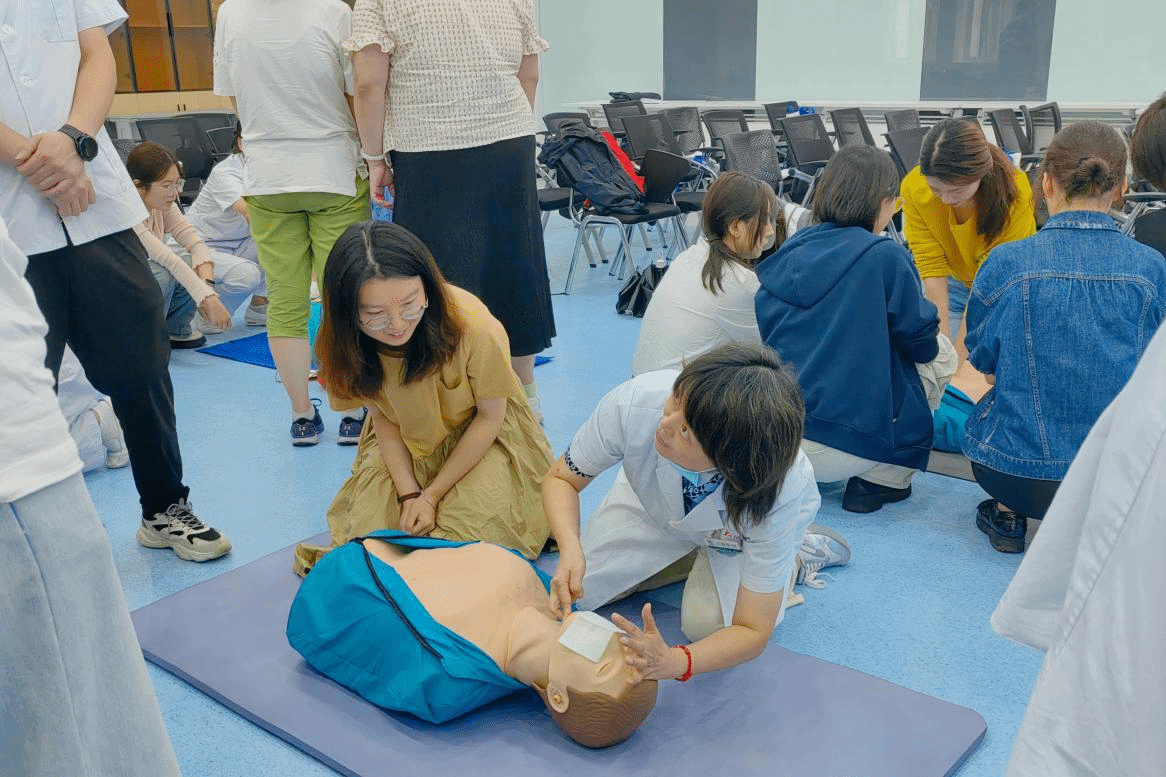 培训中,王莉医生用真实案例切入,强调了“黄金四分钟”在心搏骤停救援中的关键意义,并系统讲解了心肺复苏的操作流程与自动体外除颤器的使用规范。在讲解气道异物梗阻急救时,她分别演示了成人、儿童及婴儿发生窒息时的海姆立克急救法和背部叩击法,强调“第一时间识别、第一时间施救”的重要性。